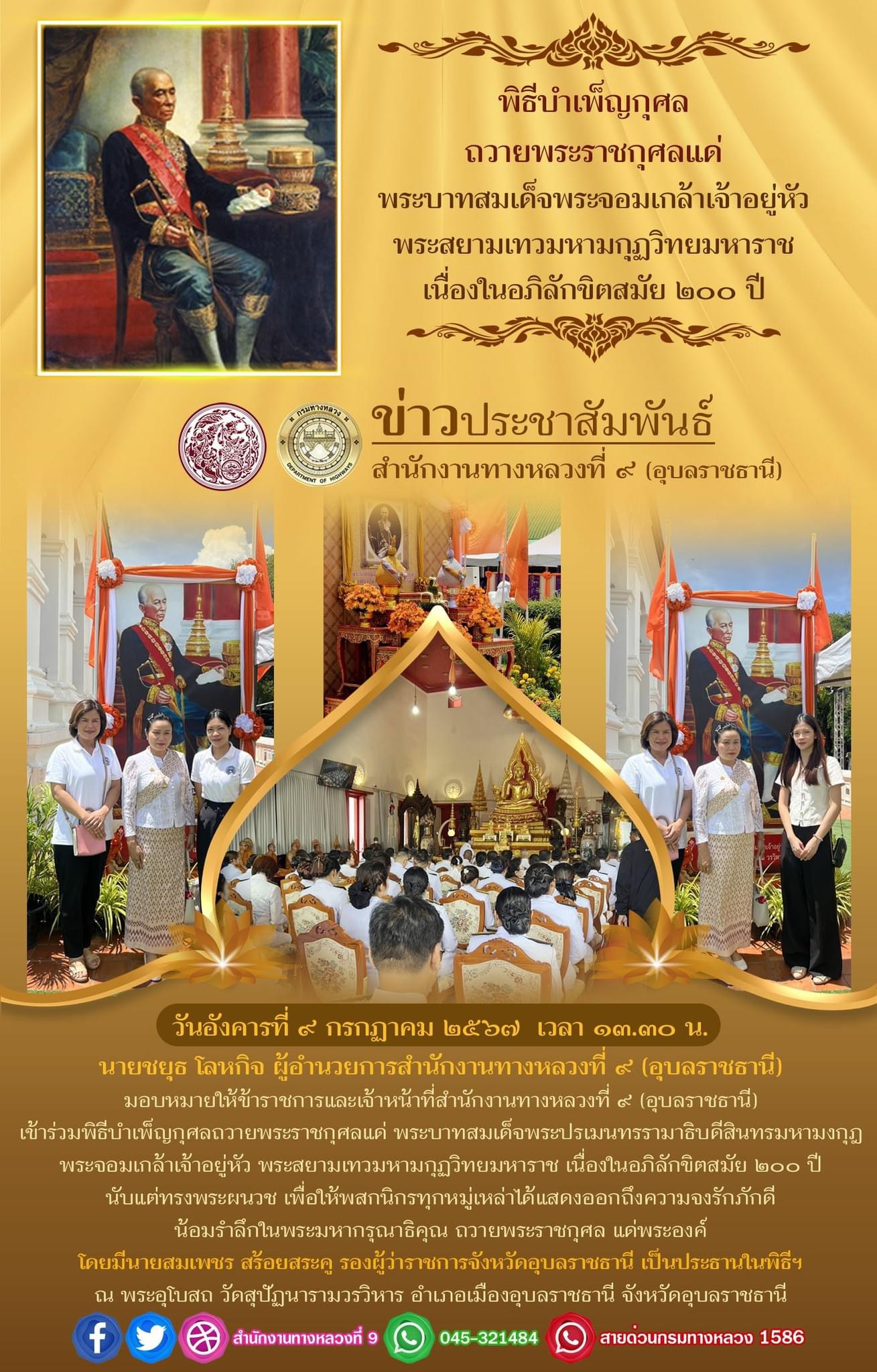 ร่วมพิธีถวายเครื่องราชสักการะ วางพานพุ่ม และพิธีจุดเทียนถวายพระพรชัยมงคล เฉลิมพระเกียรติพระบาทสมเด็จพระเจ้าอยู่หัว