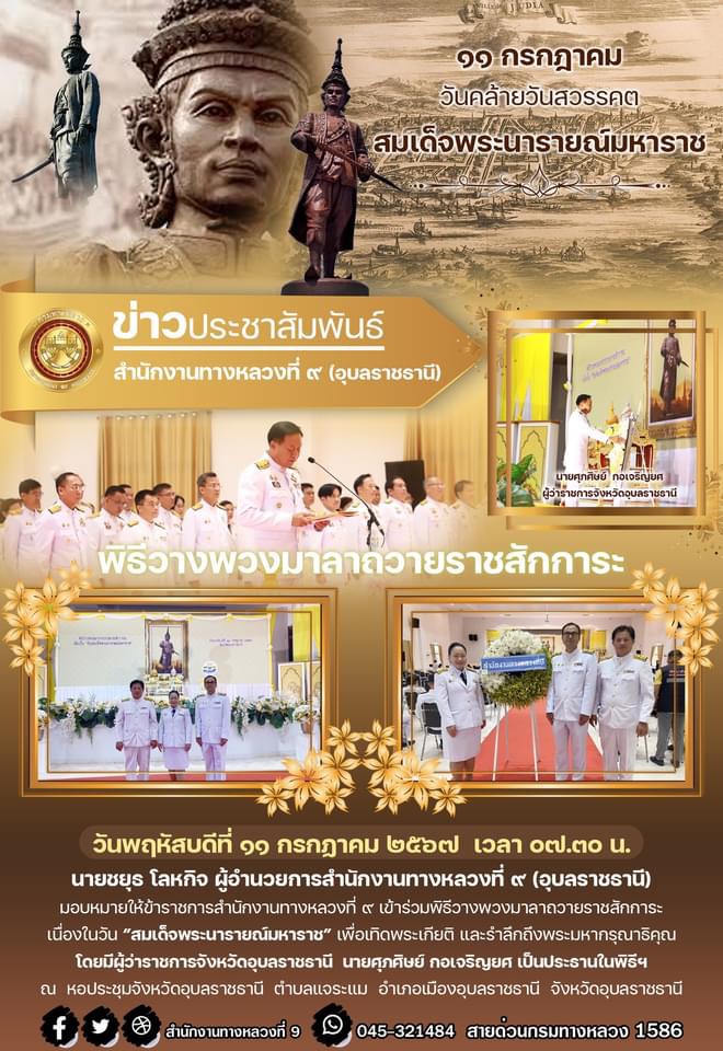 พิธีวางพวงมาลาถวายราชสักการะเนื่องในวัน ”สมเด็จพระนารายณ์มหาราช”
