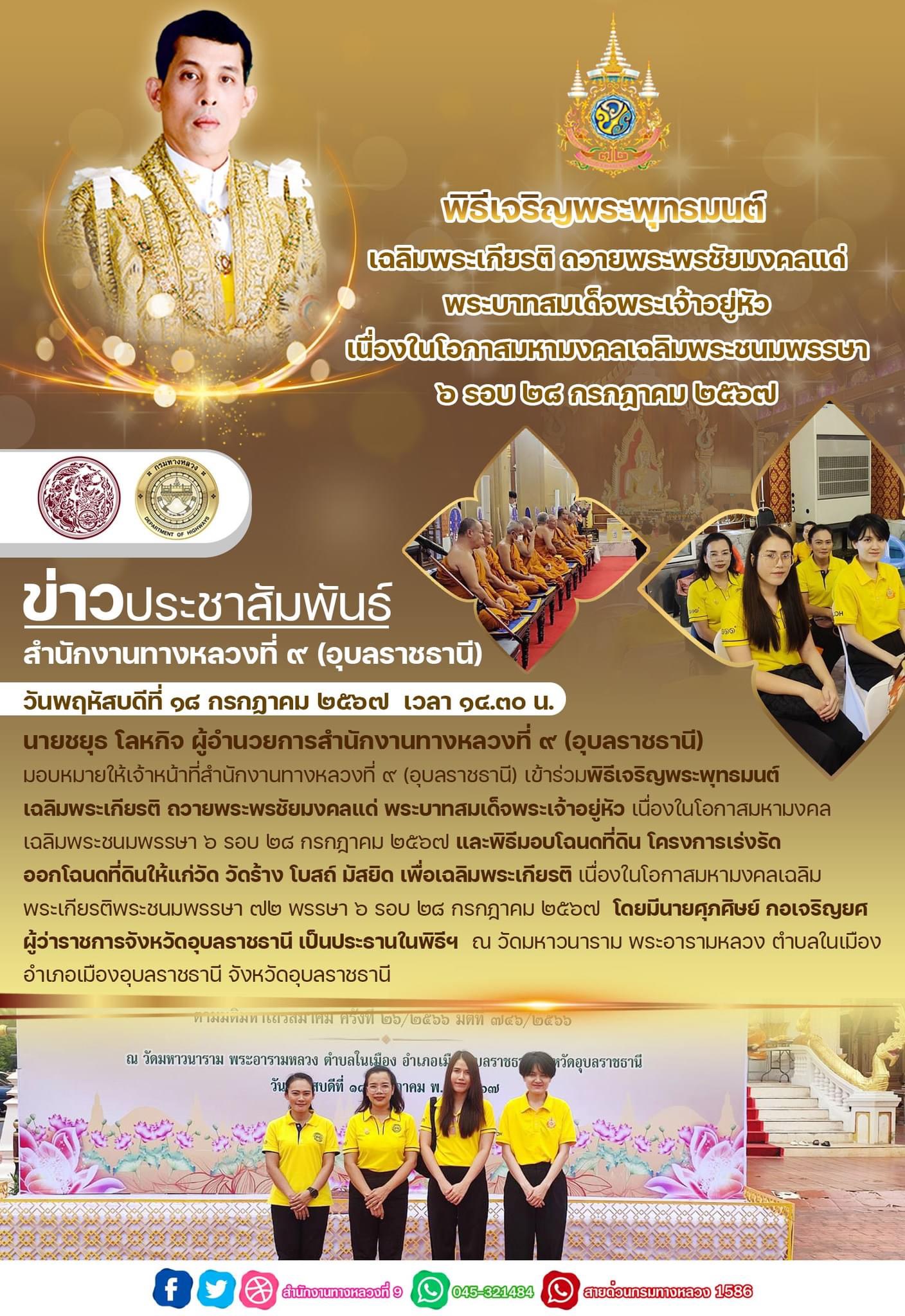 ร่วมพิธีเจริญพระพุทธมนต์เฉลิมพระเกียรติ ถวายพระพรชัยมงคลแด่ พระบาทสมเด็จพระเจ้าอยู่หัว