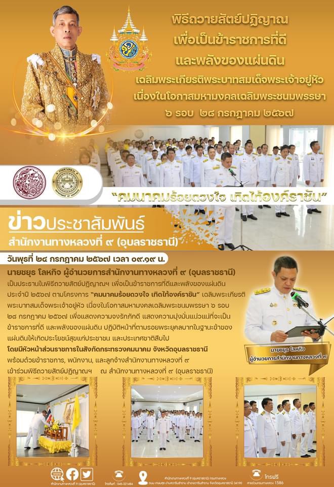 พิธีถวายสัตย์ปฏิญาณฯ โครงการ “คมนาคมร้อยดวงใจ เทิดไท้องค์ราชัน”