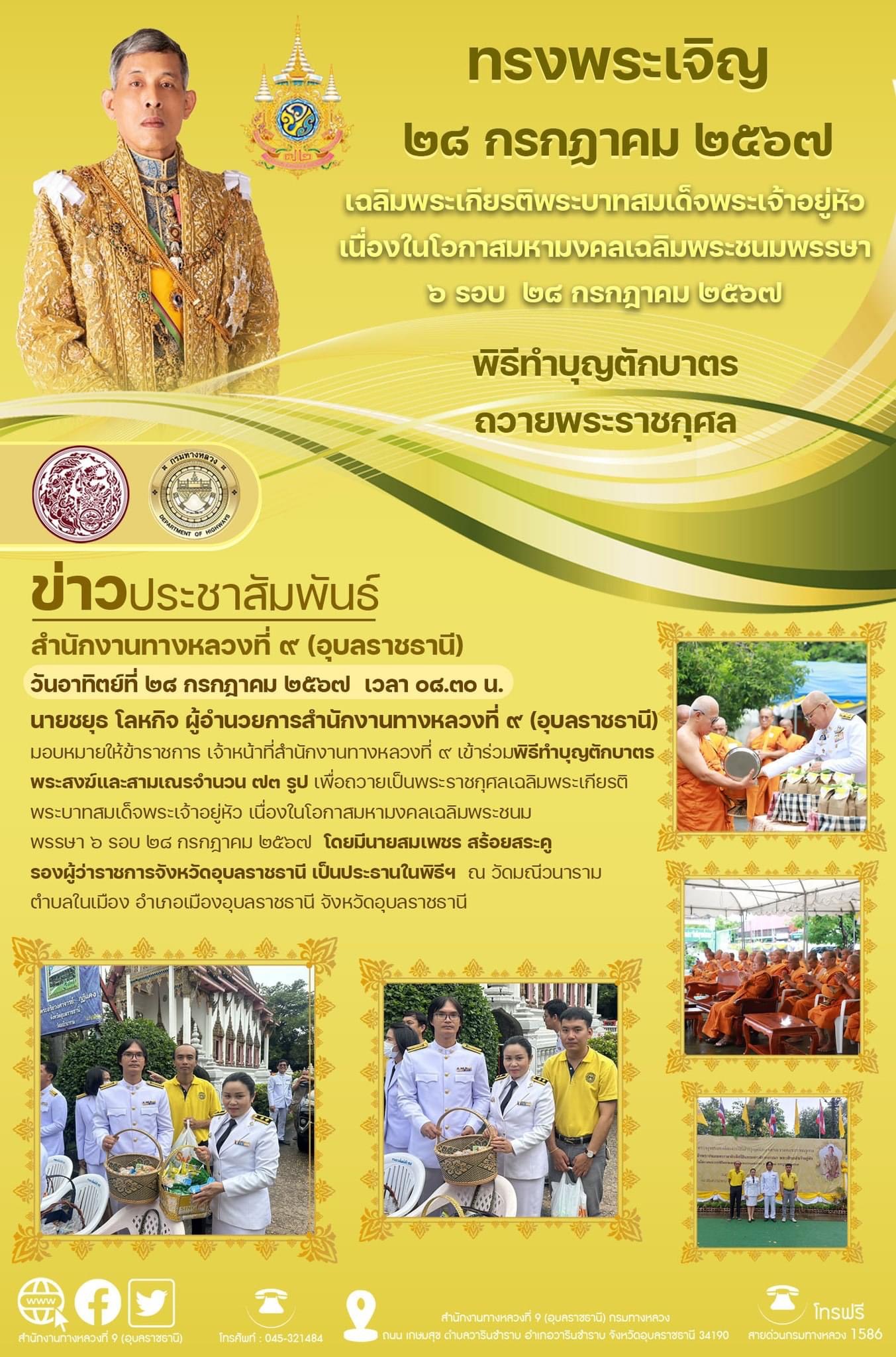 ร่วมพิธีทำบุญตักบาตร เพื่อถวายเป็นพระราชกุศลเฉลิมพระเกียรติพระบาทสมเด็จพระเจ้าอยู่หัว