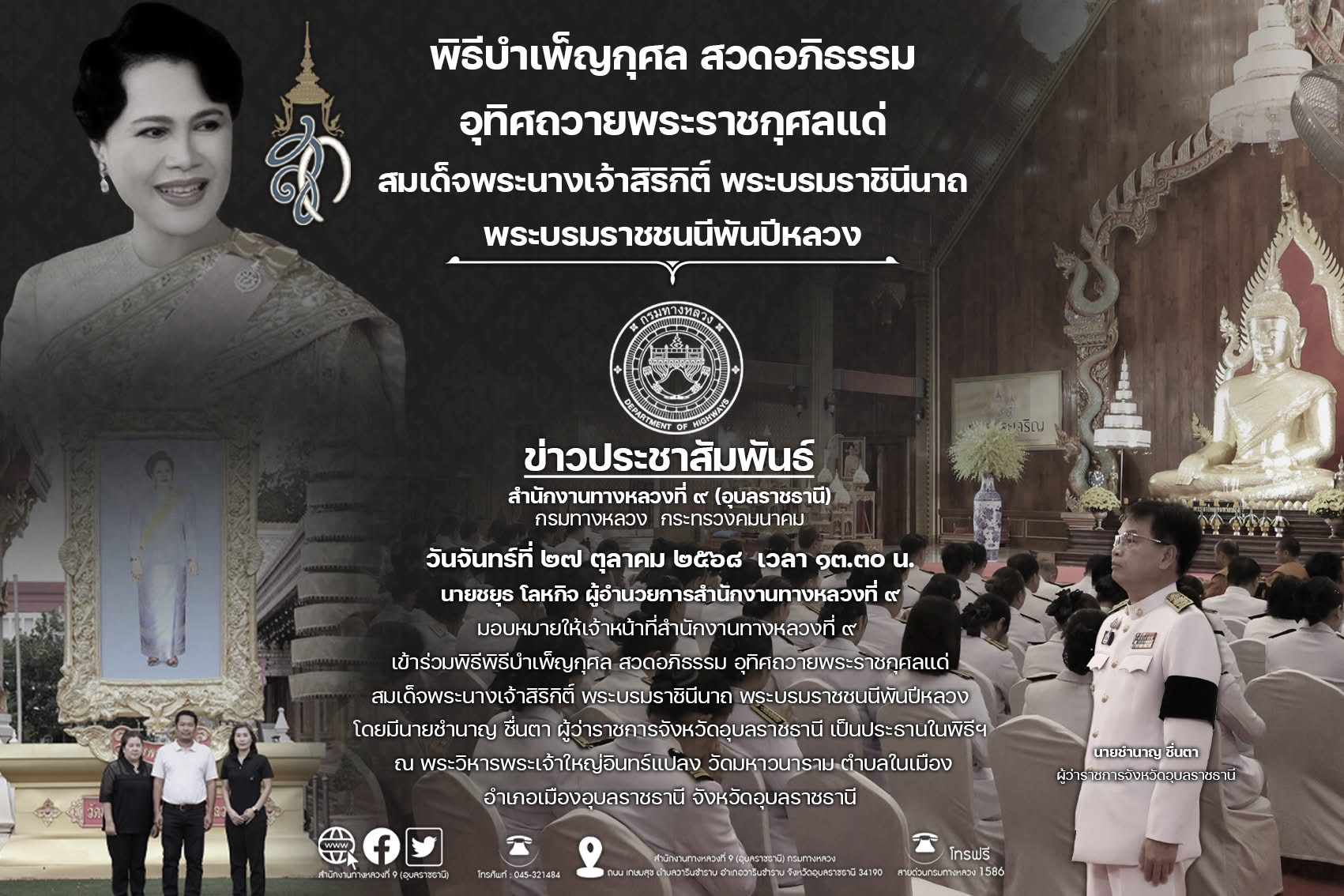 พิธีบำเพ็ญกุศล สวดอภิธรรม อุทิศถวายพระราชกุศลแด่สมเด็จพระนางเจ้าสิริกิติ์ พระบรมราชินีนาถ พระบรมราชชนนีพันปีหลวง