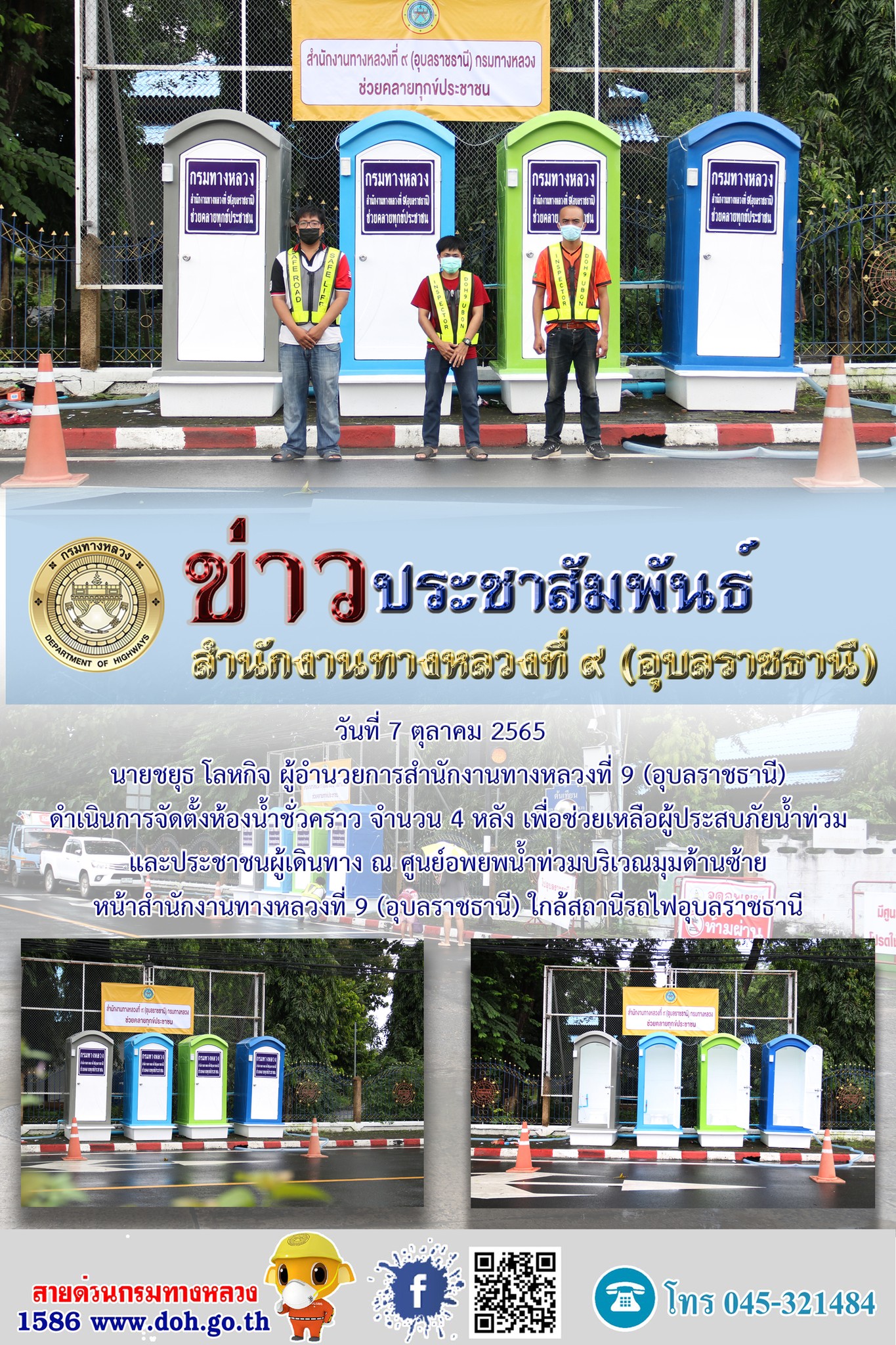 จัดตั้งบริการห้องน้ำชั่วคราวช่วยเหลือผู้ประสบภัยน้ำท่วมและประชาชนผู้เดินทาง |