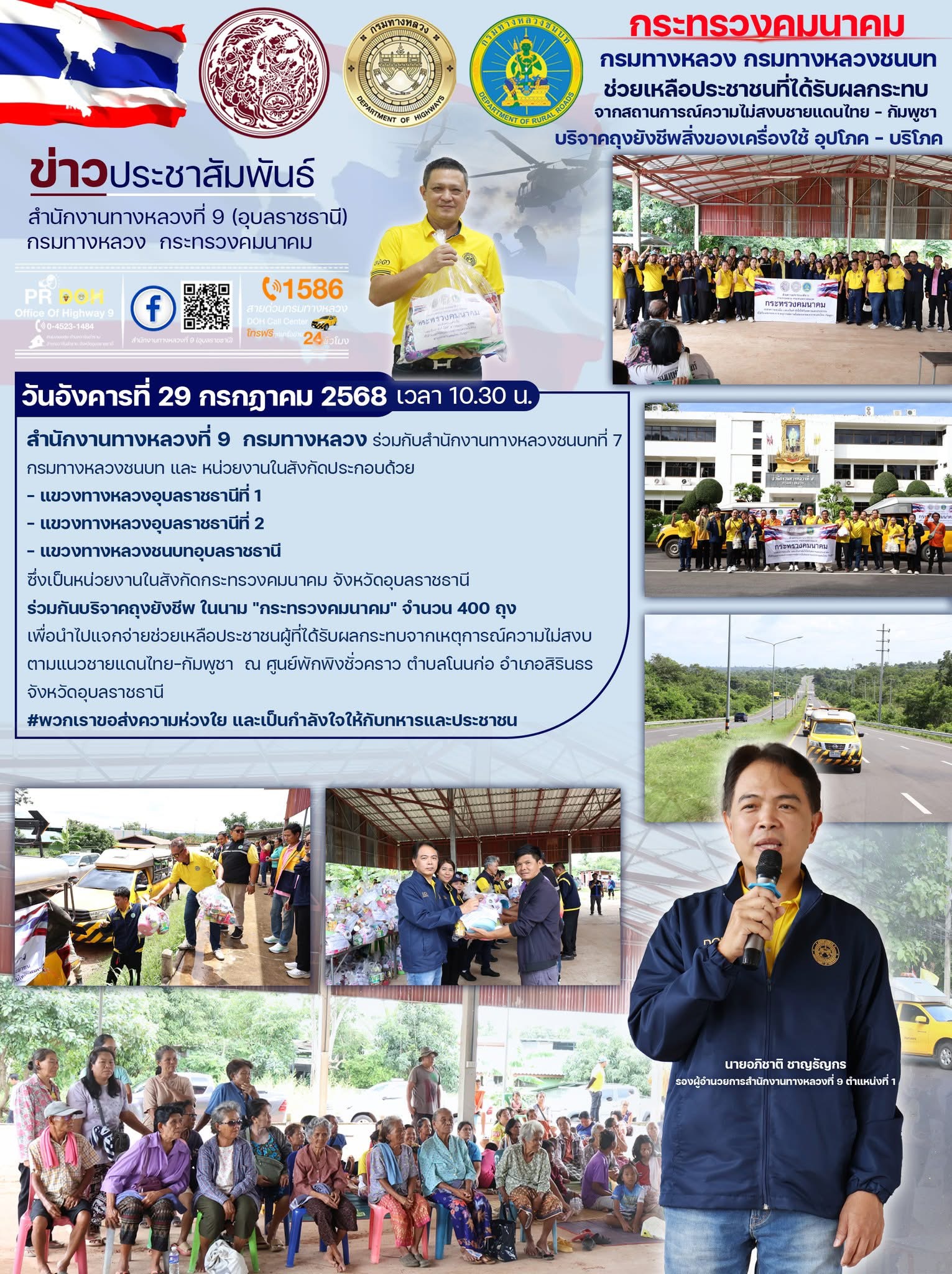 มอบถุงยังชีพผู้ที่ได้รับผลกระทบจากเหตุการณ์ความไม่สงบตามแนวชายแดนไทย–กัมพูชา