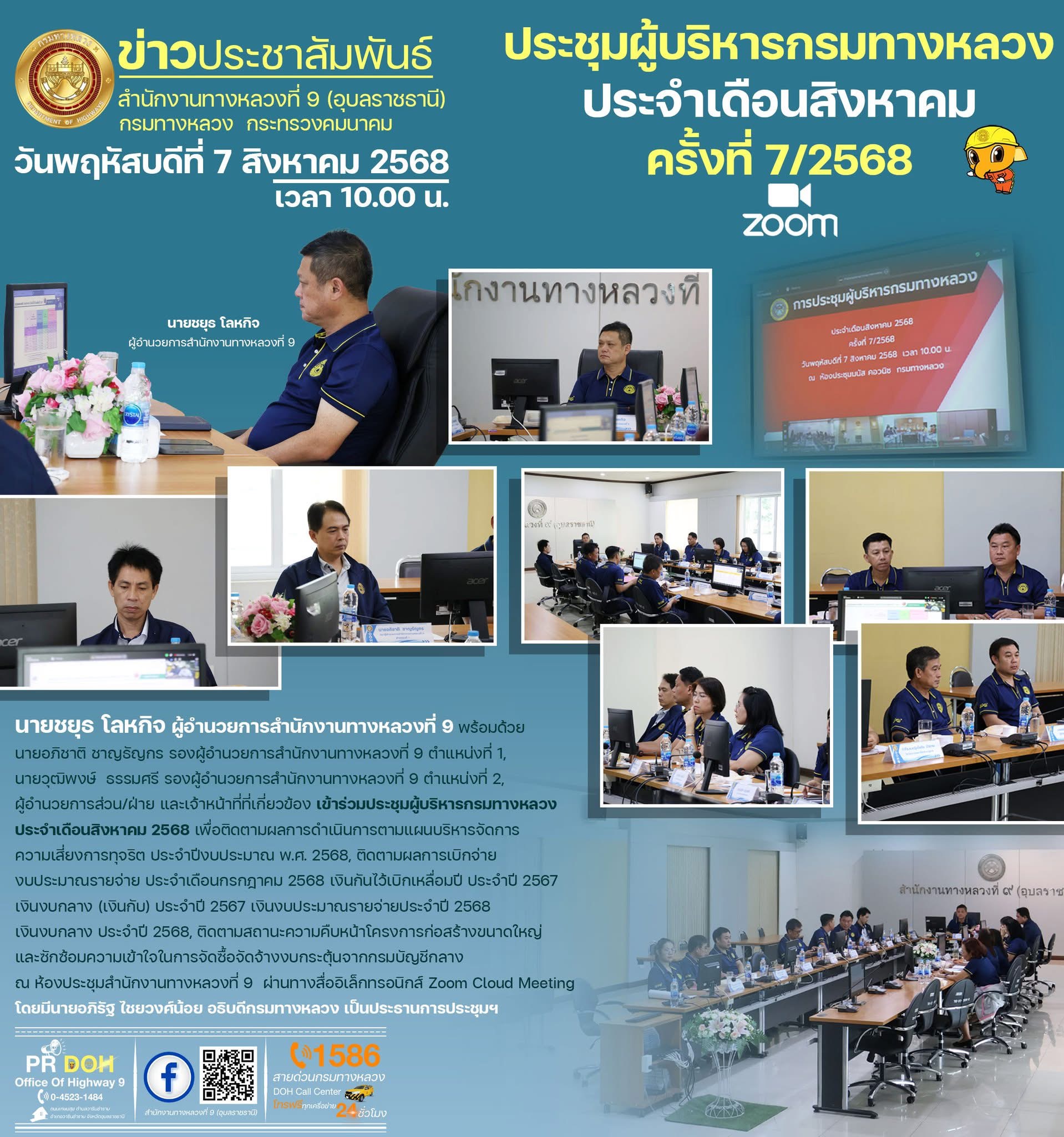 ประชุมผู้บริหารกรมทางหลวง ประจำเดือนสิงหาคม 2568