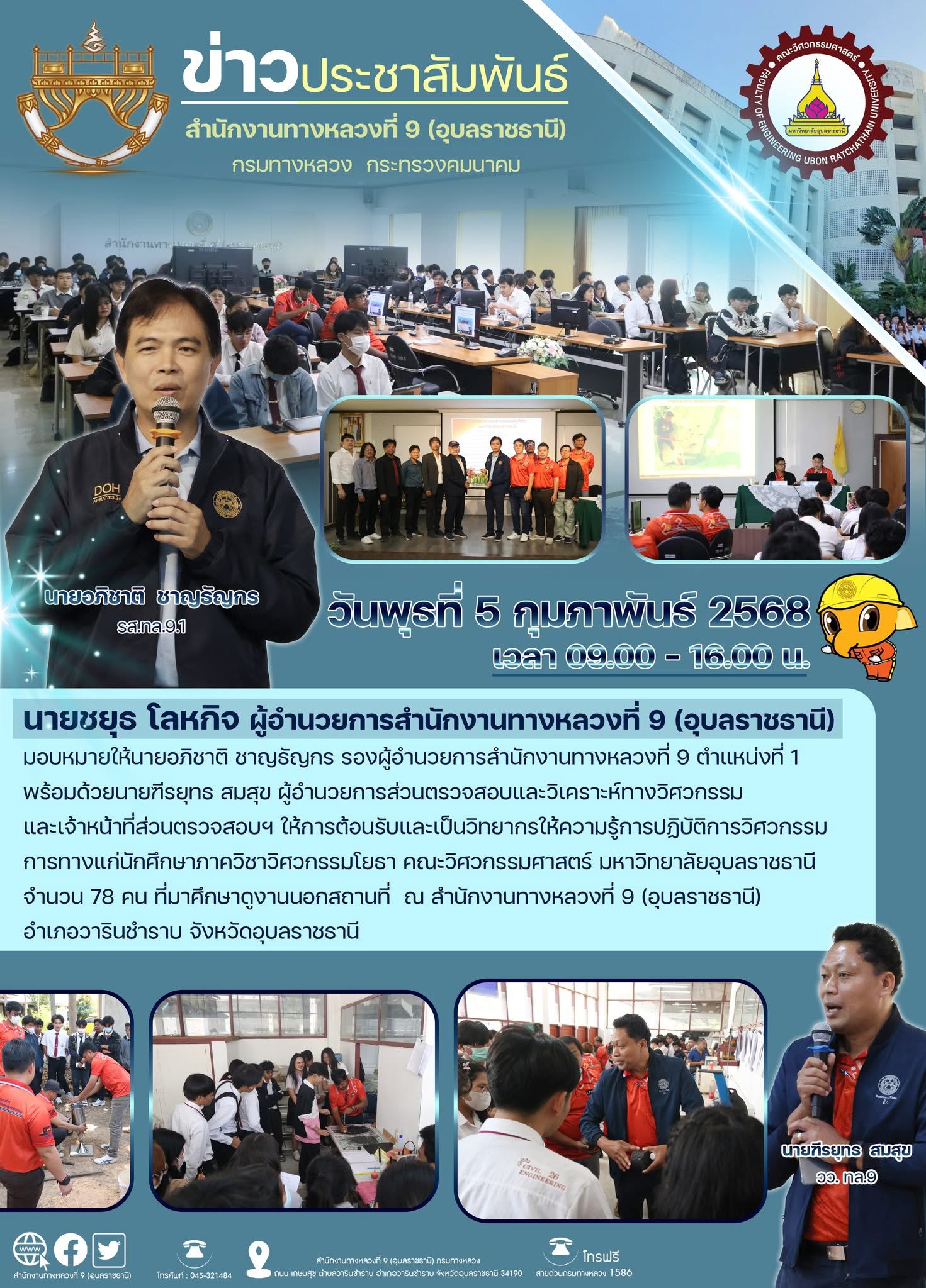 การบรรยายให้ความรู้การปฏิบัติการวิศวกรรมการทางแก่นักศึกษาภาควิชาวิศวกรรมโยธา มหาวิทยาลัยอุบลราชธานี