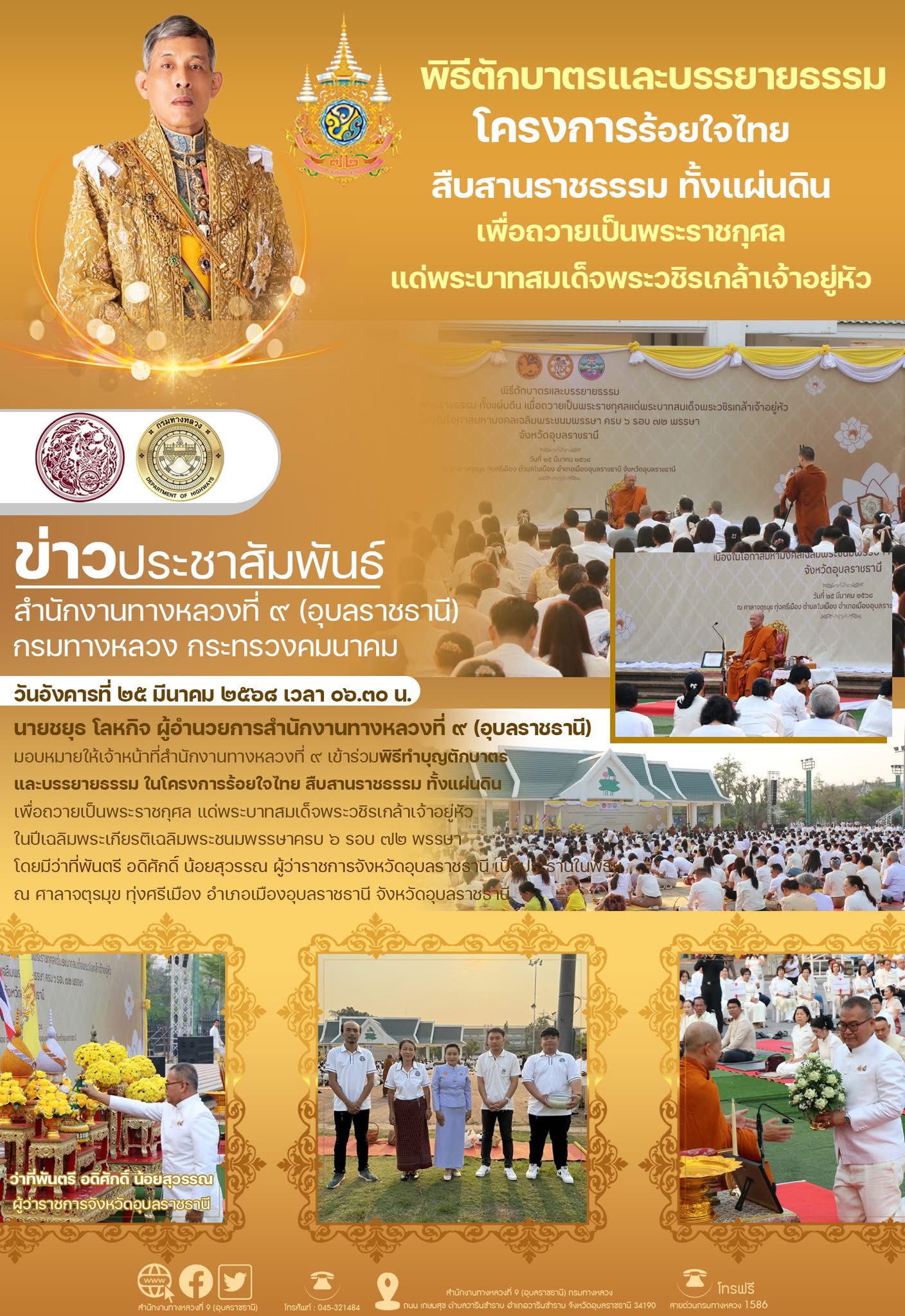 ทำบุญตักบาตรและบรรยายธรรม โครงการร้อยใจไทย สืบสานราชธรรม ทั้งแผ่นดิน