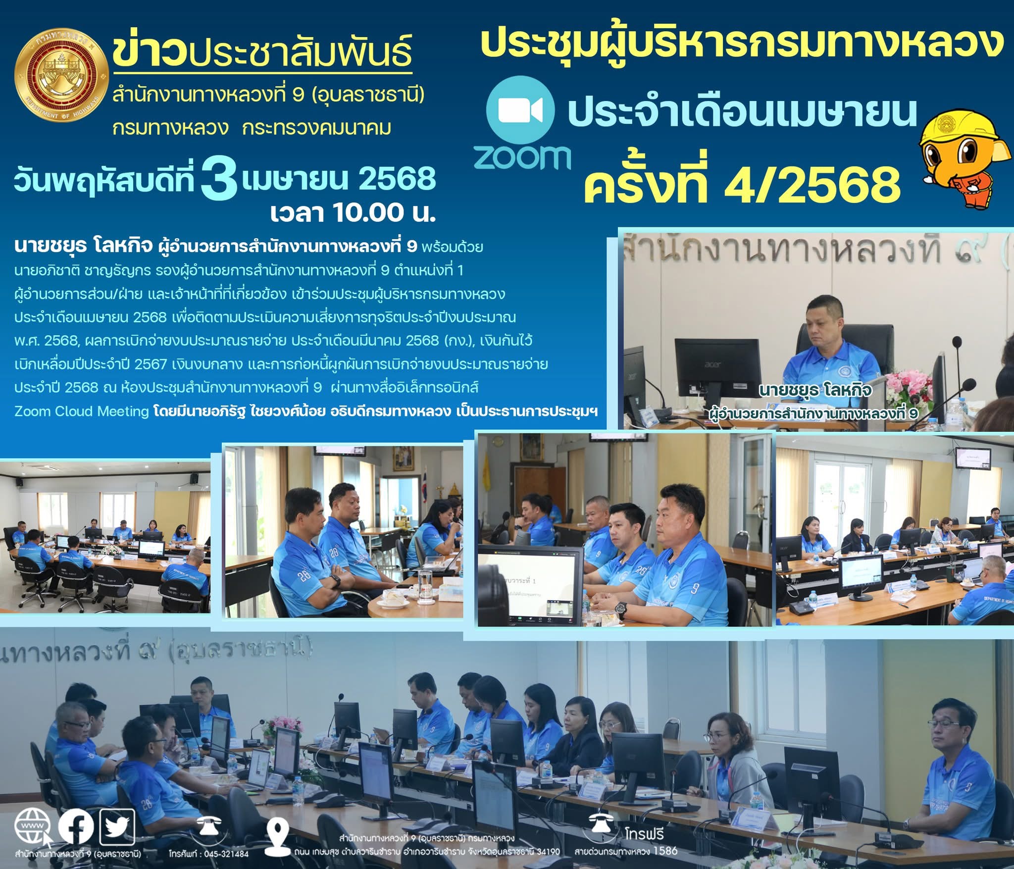 ประชุมผู้บริหารกรมทางหลวง ประจำเดือนเมษายน 2568