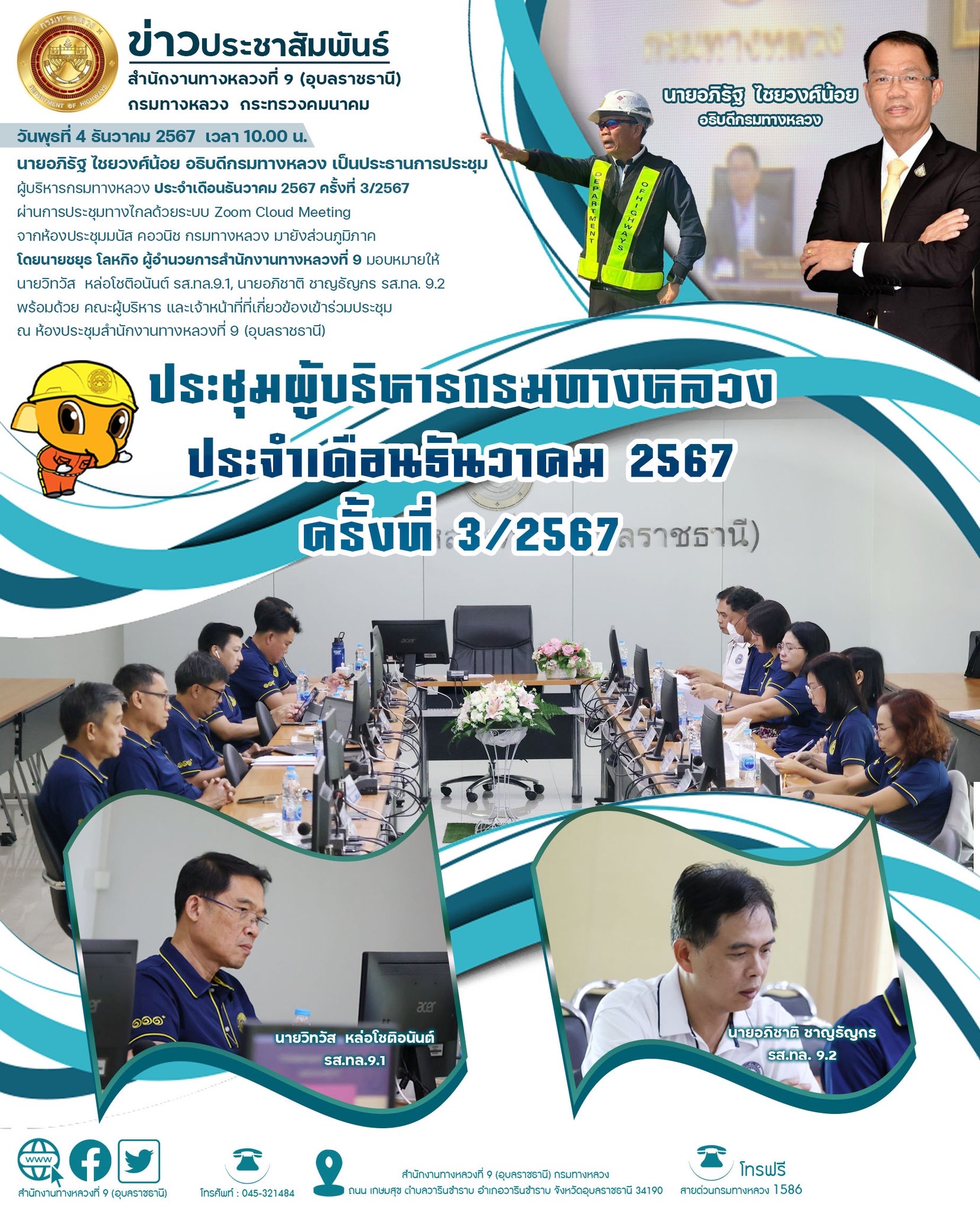 ประชุมผู้บริหารกรมทางหลวง ประจำเดือนธันวาคม 2567 ครั้งที่ 3/2567