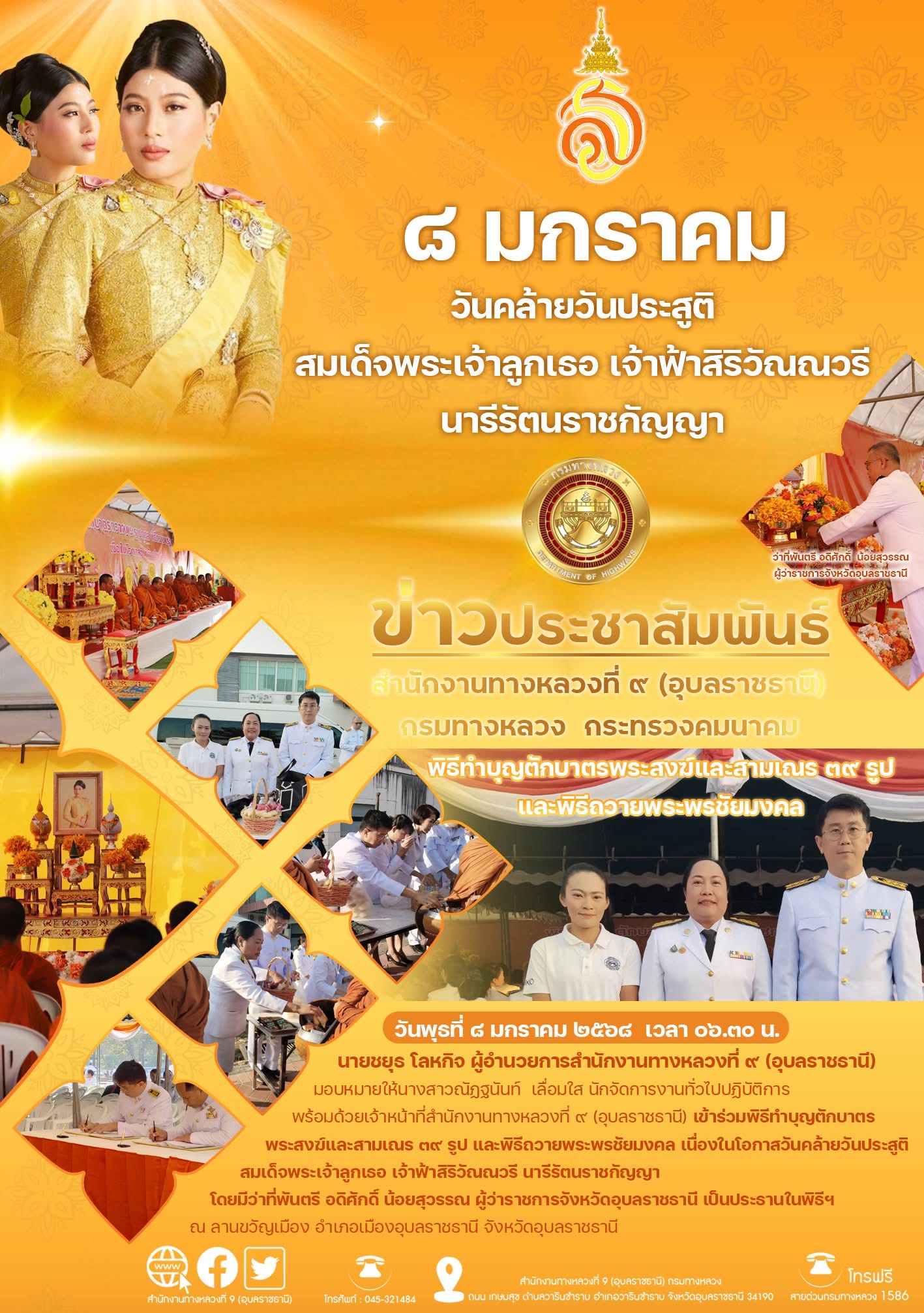 พิธีทำบุญตักบาตร วันคล้ายวันประสูติสมเด็จพระเจ้าลูกเธอเจ้าฟ้าพัชรกิติยาภา