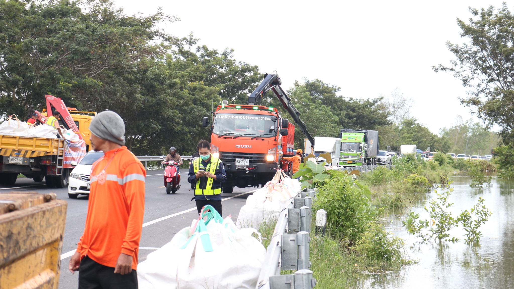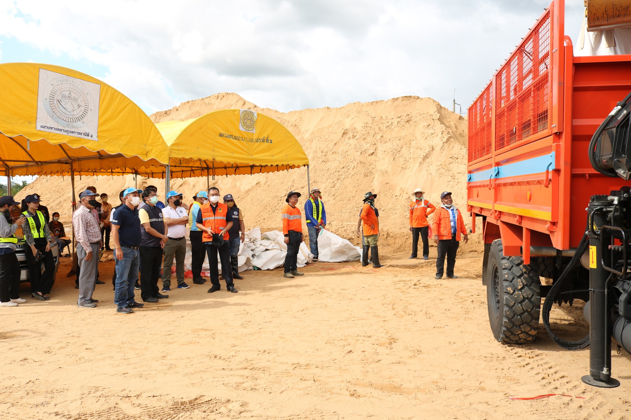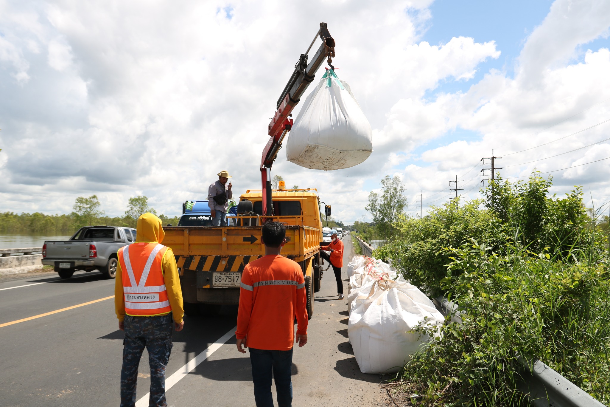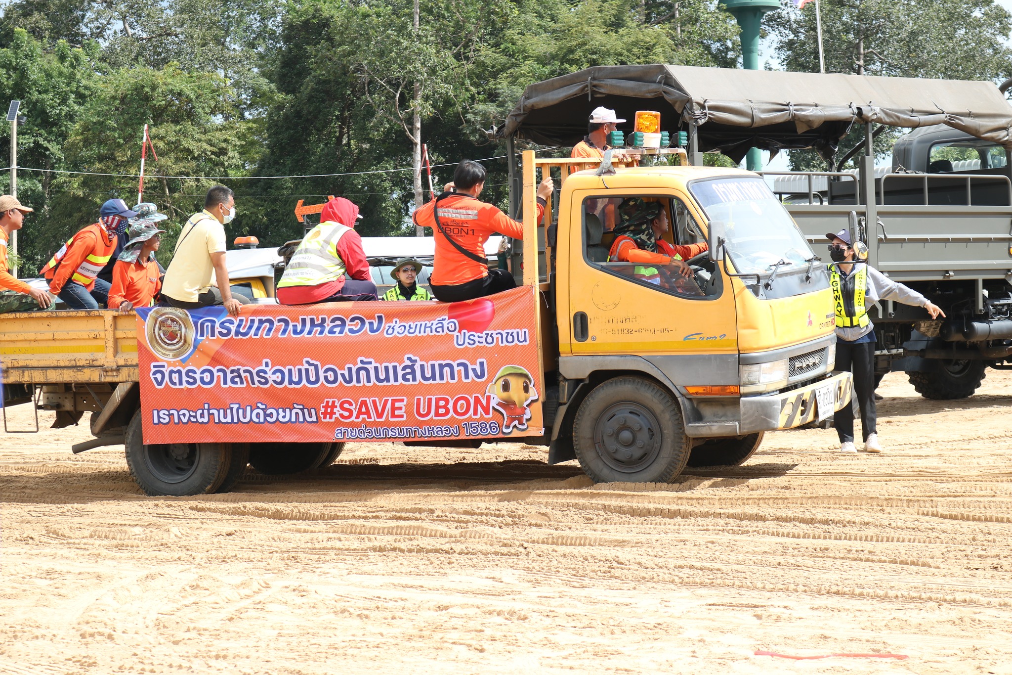 วันนี้ 6 ต.ค. 65 เวลา 14.00 น. นายชลธี ยังตรง ผู้ว่าราชการจังหวัดอุบลราชธานี ร่วมกับนายชยุธ โลหกิจ ผู้อำนวยการสำนักงานทางหลวงที่ 9 (อุบลราชธานี) นายเอกพงศ์ เศรษฐมานพ รองผู้อำนวยการสำนักงานทางหลวงที่ 9 นายวันปิยะ ภุมมะภูติ ผู้อำนวยการแขวงทางหลวงอุบลราชธานีที่ 1 นายวินัย รัชบุตร ผู้อำนวยการแขวงทางหลวงอุบลราชธานีที่ 2 เยี่ยมให้กำลังใจเจ้าหน้าที่หน่วยงานในสังกัดกรมทางหลวง จิตอาสา 904 และหน่วยงานที่เกี่ยวข้อง ชึ่งร่วมบูรณาการกรอกกระสอบทรายและถุงบิ๊กแบ็คจำนวนมาก เพื่อนำไปทำแนวกั้นน้ำ ทางหลวง 231 ตอนวงแหวนรอบเมืองอุบลราชธานี (บ้านบัวเทิง ตำบลสว่างวีระวงศ์) ณ บริเวณท่าทราย SP ตำบลกุดลาด อำเภอเมืองอุบลราชธานี จังหวัดอุบลราชธานี